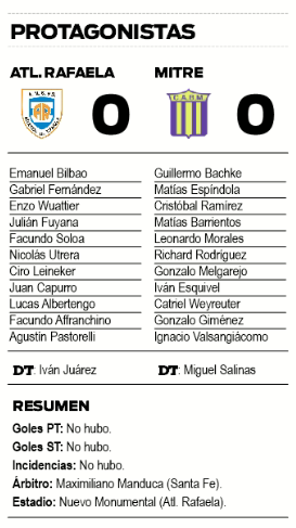 Un buen punto fue el que rescató ayer Bartolomé Mitre ante un complicado rival. En el estadio Nuevo Monumental de Rafaela, se plantó y le jugó de igual a igual al escolta de la Zona D del torneo Federal A y uno de los grandes candidatos a luchar por el ascenso.