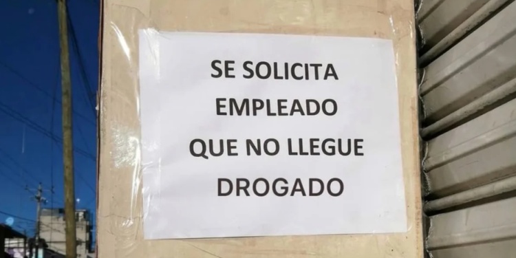 Un cartel pegado en la persiana de un comercio causó furor en las redes sociales al solicitar de manera directa: “Se solicita empleado que no llegue drogado”. La imagen, compartida por el usuario @_onerolita, rápidamente se viralizó, acumulando más de 1,1 millones de visualizaciones y generando un intenso debate entre usuarios de la plataforma X (antes Twitter).