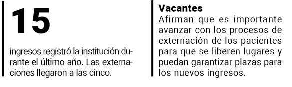 Además aparecen otros actores involucrados, como la Justicia, encargada de evaluar si las condiciones están dadas para avanzar con la externación. “Muchas veces los lugares donde estaban los pacientes no son los adecuados (para continuar con la externación) pero siempre vivieron ahí. Uno va al lugar y ve que no están dadas las condiciones para decirle al juez que ese paciente puede volver a esa casa donde estaba viviendo antes. Todo eso complica las externaciones”, ejemplificó.