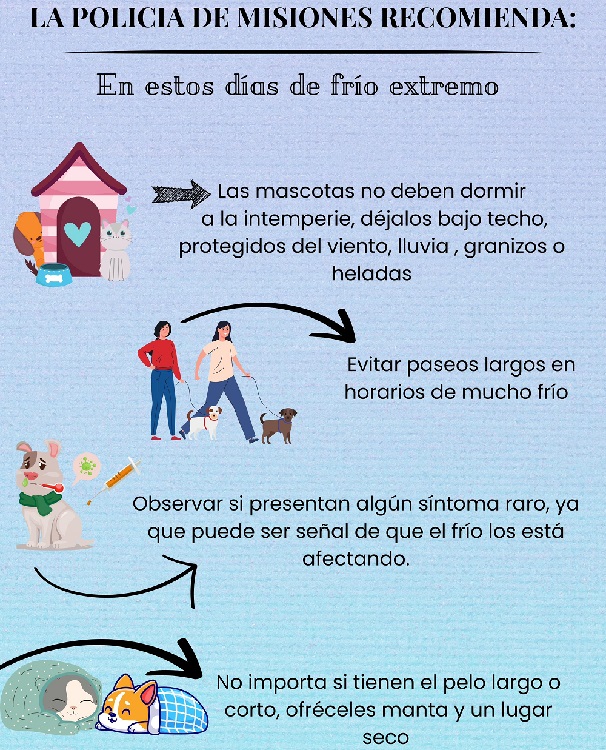 Para cuidarlos mejor, se sugiere ofrecerles mantas, un lugar seco y abrigado dentro del hogar, y evitar paseos largos en horarios de mucho frío.