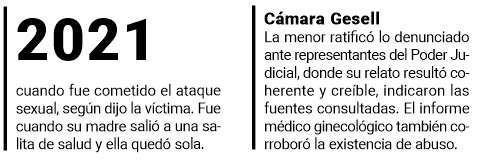 Sin embargo, debido a que la niña en Cámara Gesell refirió que fue amenazada por su primo luego de consumar la agresión sexual, recién tres años después se animó a contar a un adulto de confianza lo que le sucedió, precisó un vocero del caso.