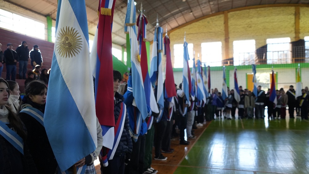 El acto fue encabezado por la Intendente María Eugenia Safrán, quién estuvo compañada de su gabinete municipal, integrantes del Honorable Concejo Deliberante, instituciones educativas y pueblo en general.
