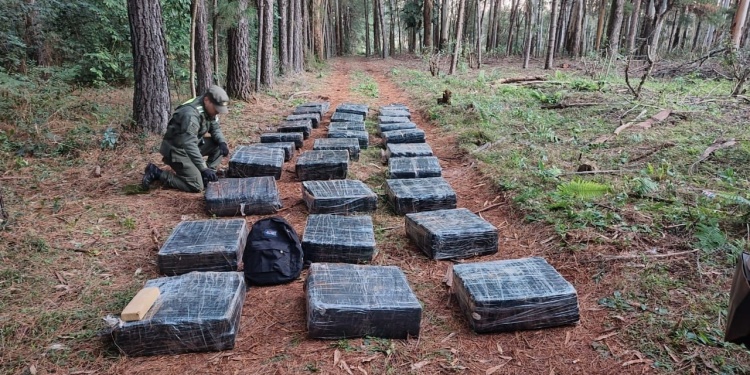 A raíz de este hecho, los gendarmes iniciaron un rastrillaje en la zona y lograron detectar, ocultos entre la vegetación, 30 bultos de grandes dimensiones, junto a una mochila, dos equipos de radio (handys) y una cinta de embalar. Por orden de la Fiscalía Federal y el Juzgado Federal de Oberá, los funcionarios procedieron a la apertura de los paquetes ante testigos.