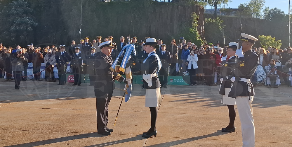 En esta oportunidad, 87 cadetes recibieron el uniforme y también se realizó el cambio de abanderados, que usualmente se efectúa el 20 de junio, pero debió postergarse por el acto central que encabezó el presidente de la Nación en Buenos Aires. “No tuvimos ese espacio para hacer nuestro cambio de abanderados, así que lo hicimos ahora, en esta ceremonia tan significativa para todos”, explicó el director.