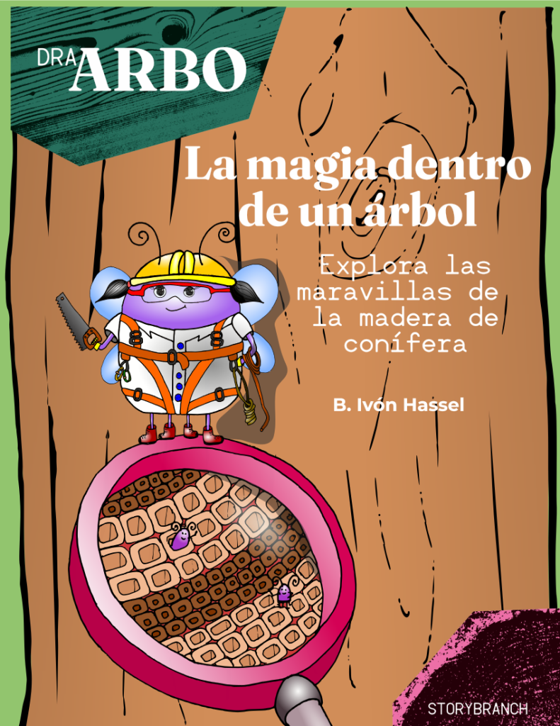 Se trata de un libro inspirador, diseñado para educar y empoderar tanto a niños como a adultos, ayudándolos a convertirse en guardianes de la Tierra. “La magia dentro de un árbol” está basado en ciencia, e incluye elementos de fantasía para despertar la curiosidad infantil por la naturaleza. Acompaña a la Doctora Arbo en una aventura mágica dentro de un árbol de madera conífera, con ilustraciones vibrantes y una historia emocionante. Los jóvenes explorarán el mundo interior de los árboles, desde raíces hasta copa, aprendiendo sobre su papel vital en nuestro planeta, y conocerán cómo se ven las diferentes partes de la anatomía de la madera a través de microscopios especiales.