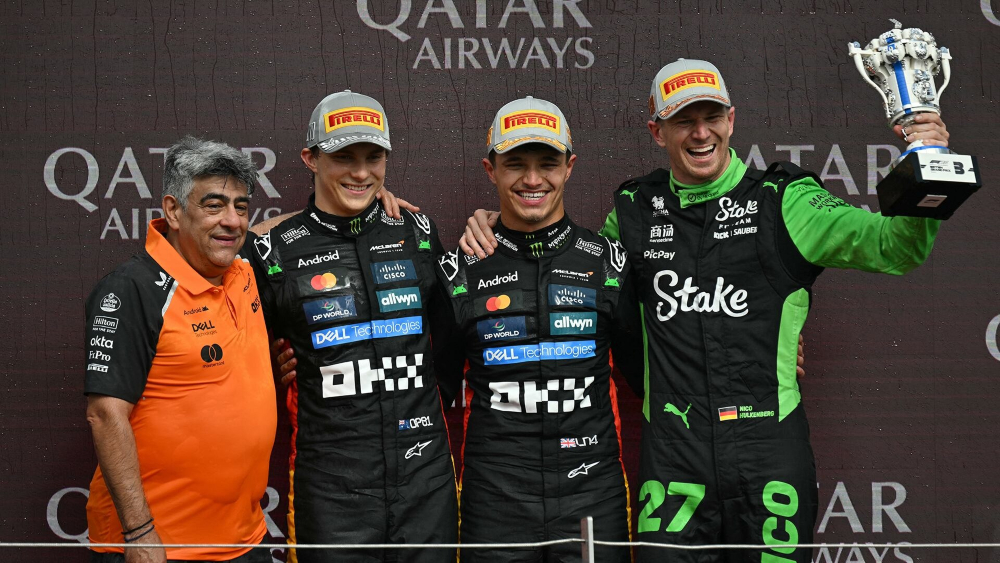 En segundo lugar arribó el líder del campeonato de pilotos, el australiano Óscar Piastri (McLaren). Y completó el podio el sorpresivo Nico Hülkenberg (Sauber). El alemán de 37 años remontó desde el puesto 19 al tercer lugar, en una sorprendente carrera.