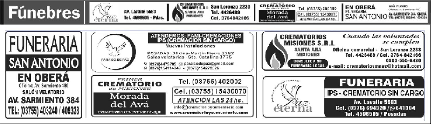 • Fúnebres del domingo 6 de julio