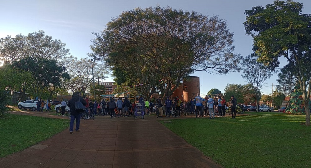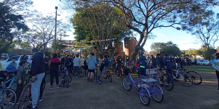 Llegaron a la cita ciclistas de Garupá, Miguel Lanús, los ciclistas que van tradicionalmente hasta Itatí, y también quienes realizan bicimandados.