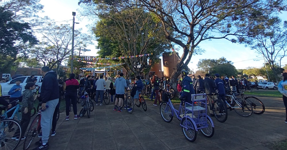 Llegaron a la cita ciclistas de Garupá, Miguel Lanús, los ciclistas que van tradicionalmente hasta Itatí, y también quienes realizan bicimandados.