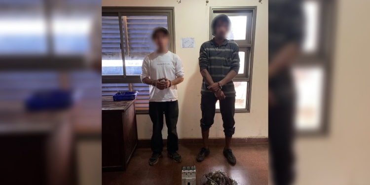 Rápidamente, una patrulla de la Comisaría Tercera acudió al lugar y aprehendió a dos individuos de 33 y 24 años, quienes tenían en su poder una llave térmica con terminales de cobre y varios cables, elementos que fueron incautados bajo acta.