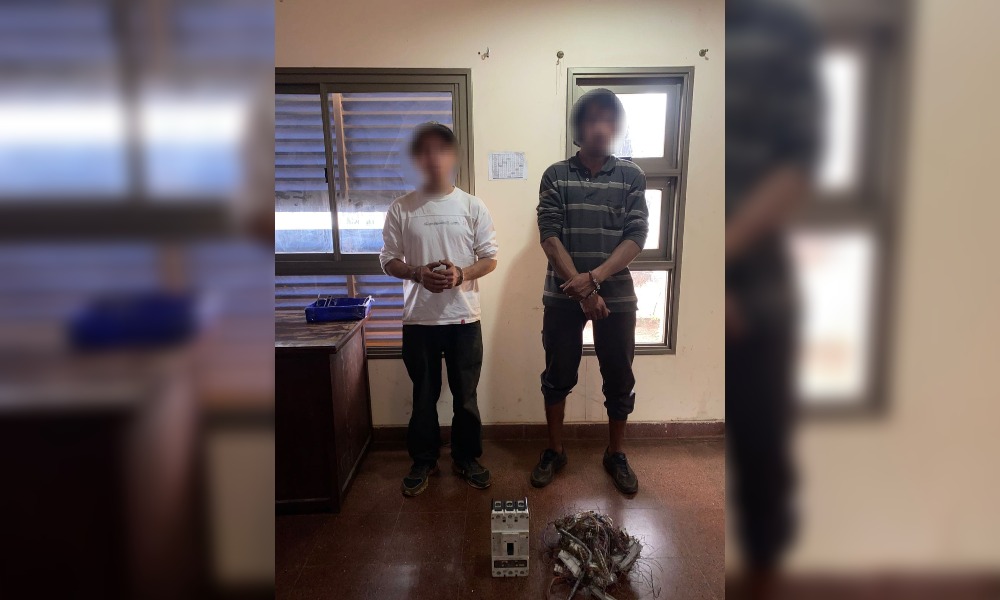 Rápidamente, una patrulla de la Comisaría Tercera acudió al lugar y aprehendió a dos individuos de 33 y 24 años, quienes tenían en su poder una llave térmica con terminales de cobre y varios cables, elementos que fueron incautados bajo acta.