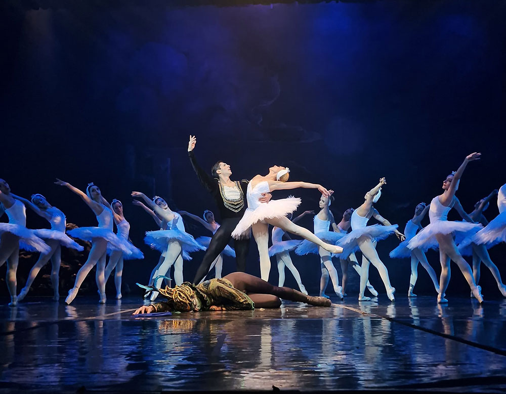 El elenco está encabezado por Suellen Villar (como Odette y Odile) y Emiliano Perviú (como el príncipe Sigfrido), junto a Wilton Lucena (bufón) y Octavio Velázquez (el brujo), y el cuerpo de baile completo del Ballet Clásico.