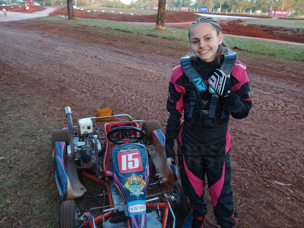 El cierre de la jornada sabatina fue con la disputa de las primeras series. En la 110cc, la local Ambar Tomasino (foto) se llevó la victoria y el podio lo completaron Luccio Sartori y Paulo Weremczuk.