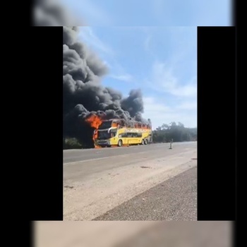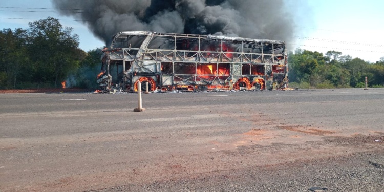 La estructura calcinada de un colectivo de la empresa Crucero del Norte sobre la Ruta Nacional 105, en San José, es el impactante resultado del incendio que se desató este sábado por la tarde. La unidad, que no transportaba pasajeros, terminó completamente consumida por el fuego, aunque afortunadamente no hubo heridos.