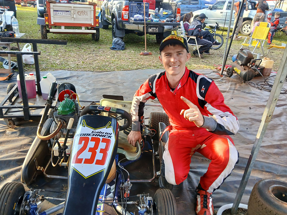 Arrancó ayer la actividad oficial de la cuarta fecha del Campeonato Misionero de karting sobre tierra y uno de los protagonistas fue Gabriel Kobernick, quien se quedó con la pole position en Estandar 150cc y hoy buscará un nuevo triunfo para mantenerse en lo alto de las posiciones.