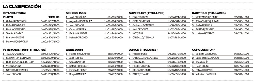El oriundo de Hipólito Yrigoyen completó la mejor vuelta al trazado del circuito apostoleño Mariano Olexyn en 1m00s567/1000 y dejó así atrás al posadeño Rafael Honecker, justamente su escolta en el campeonato. El tercero en la clasificación fue el local Benicio Tomasino, casualmente también tercero en la tabla anual.