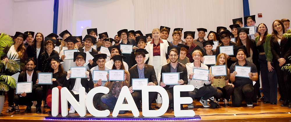 “Estamos muy felices porque más de 60 jóvenes estén culminando las diferentes carreras que ofrecemos, todas con base tecnológica”, manifestó la contadora pública Silvia Cabrera, rectora del Instituto INCADE y coordinadora de la Escuela de Negocios, el viernes, durante el acto de colación que se hizo en el auditórium “Tierra sin mal”.