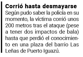 Como consecuencia de los disparos y según el parte médico, Ferreyra sufrió “un impacto en la región inguinal izquierda, y otro en la ingle derecha, con perforación de intestino y doble perforación de vejiga, con 90 días de curaciones”.