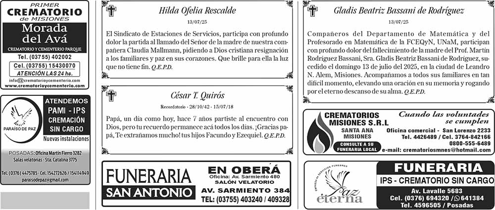 Tags: Fúnebres 15-07-2025