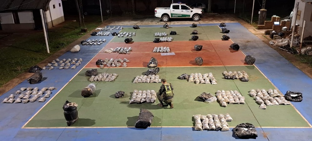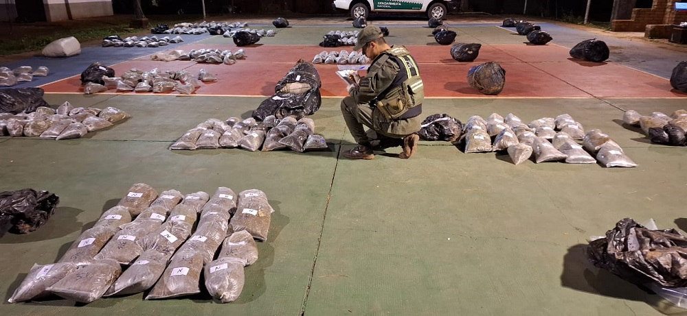 Por disposición del Juzgado Federal de Eldorado, se procedió al traslado del cargamento hasta las instalaciones del Escuadrón. Allí, en presencia de testigos, se contabilizaron 38 bultos con un peso total de 503 kilos y 3 gramos.