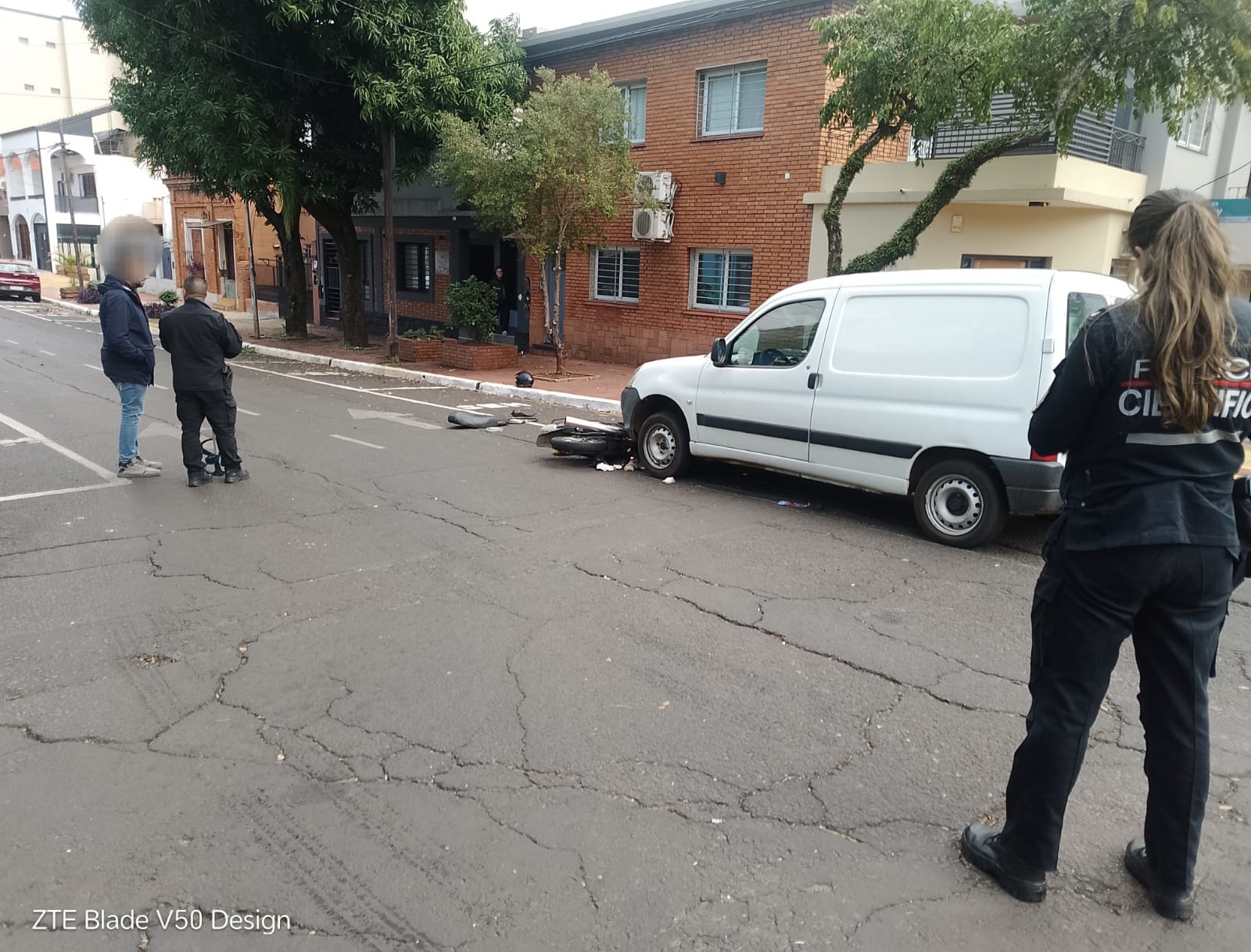 Poco después, a las 13:45, otro siniestro se registró en Posadas, en pleno centro de la ciudad. En este caso, estuvieron involucrados un vehículo Citroën Berlingo, conducido por Matías Andrés H., de 38 años, y una motocicleta Zanella 110 c.c., al mando de Javier Aníbal R., también de 38.