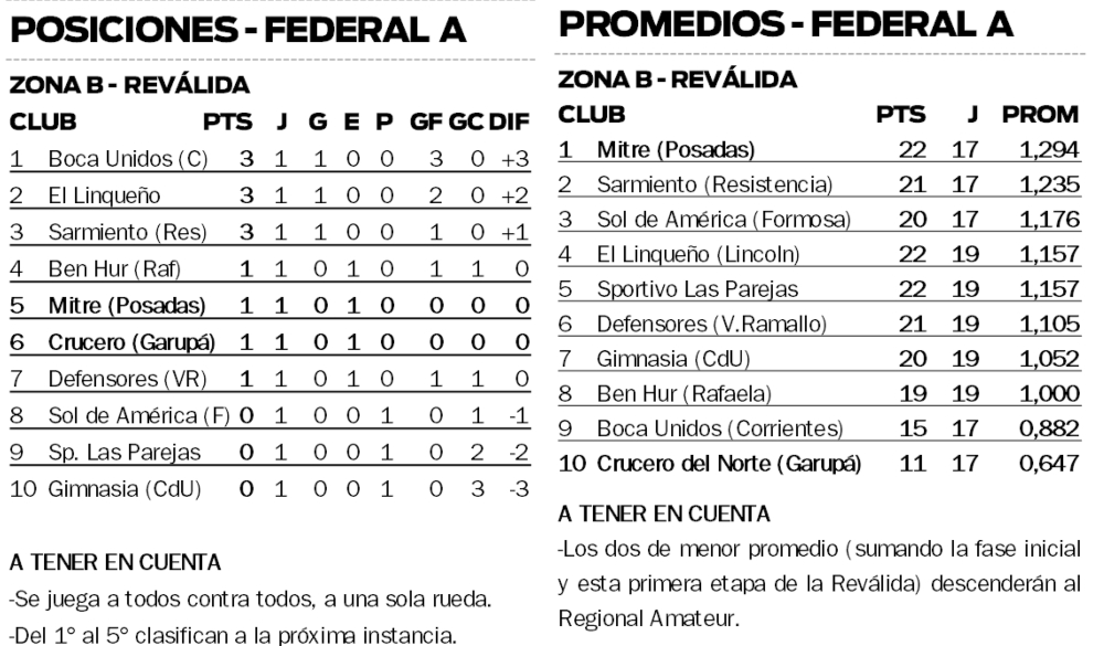 El próximo finde, Mitre recibirá a Defensores de Villa Ramallo, mientras que Crucero hará lo propio en Santa Inés ante Sol de América de Formosa. Cada partido, una final.