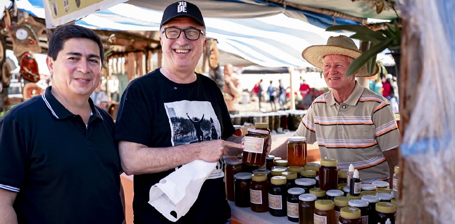 En la visita oficial, el mandatario conversó con feriantes y productores de cinco stands. Estuvo en el puesto de Estella Goralewski, con productos frescos y en conserva; luego visitó a Nicolás Andrujovich de Productos Nila; a Adriana Bettinger, de “Los Mellis”; a David Mosimann y a Eugenio Arturo Goralenski, quien expone mieles, dulces y encurtidos. En diálogo con los expositores, destacó a aquellos que se dedican a la apicultura y agradeció que productores locales conserven está actividad en Misiones con tanto compromiso y dedicación.