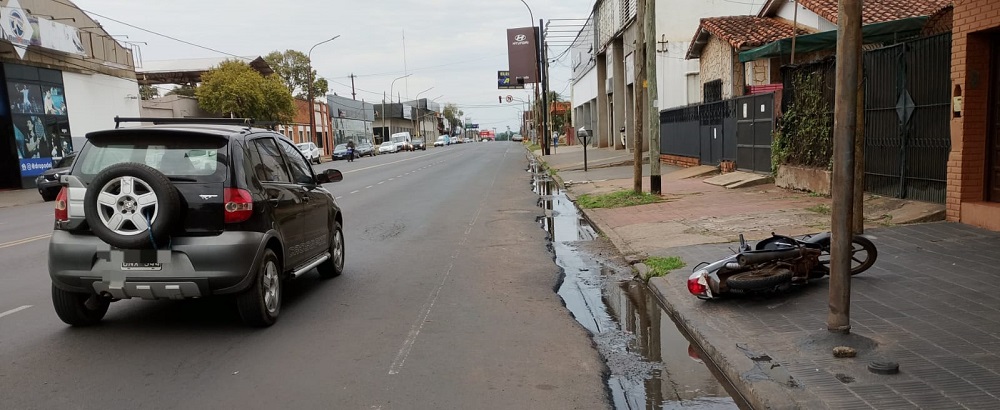 Este miércoles, pasado el mediodía, en la intersección de la avenida Uruguay y la calle Alemania, de Posadas, se produjo un siniestro vial entre un automóvil Volkswagen Crossfox y una motocicleta Zanella Zb.