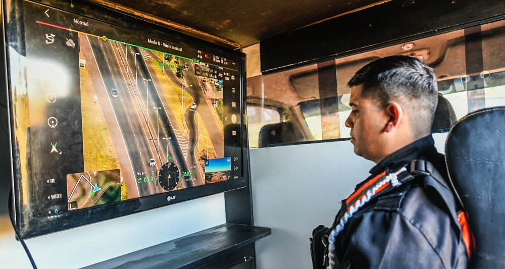 En cuanto al procedimiento ante una presunta infracción, el director del 911 relató que “el dron transmite las imágenes en tiempo real al centro móvil de videovigilancia, donde se encuentra un agente de seguridad vial que hace la observación de la transmisión en el instante”. Y es este efectivo “quién determina si la maniobra que observó es consecuente con una infracción a las normas de tránsito y lo comunica por radio al personal que está apostado en la vía de circulación”, aseguró.