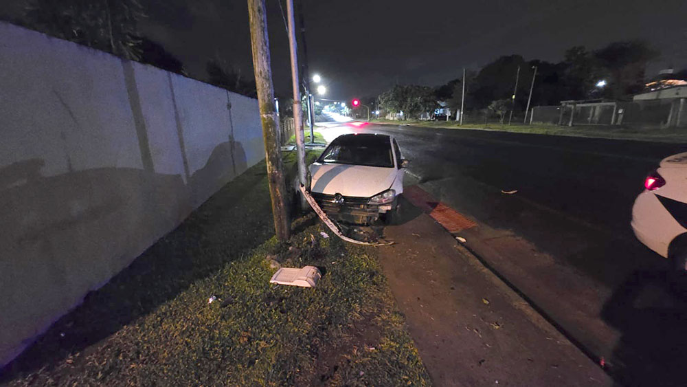 Un automóvil Volkswagen Gol blanco fue hallado abandonado y con visibles daños tras despistarse y colisionar contra un poste del tendido eléctrico, en la madrugada de este jueves, en la intersección de la Chacra 124, avenida Monseñor de Andrea y calle Neuman, en Posadas.