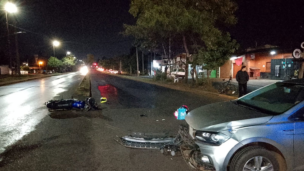 El incidente ocurrió ayer miércoles alrededor de las 20 horas, cuando efectivos de la Comisaría 18ª intervinieron en el siniestro vial. Según las primeras averiguaciones del caso, un vehículo que circulaba por la calle Montecarlo colisionó con una motocicleta que transitaba por la Avenida 213.