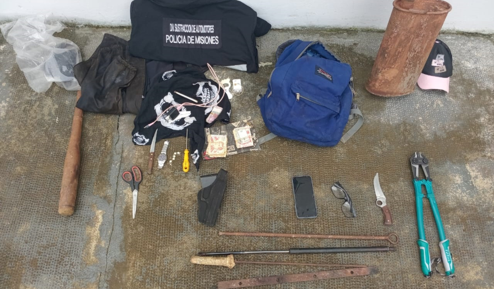 En el interior secuestraron pinzas de corte, armas blancas, ganzúas, dinero en efectivo, prendas de vestir, un bate de béisbol, una pistolera y un teléfono celular.
