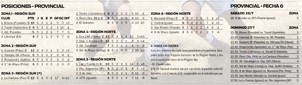 Llamó la atención que 9 de Julio y el ya eliminado ATTI (por la Zona 5) adelantaran su partido para el sábado: “esos equipos dan ventaja al resto”, dijo al respecto el obereño, teniendo en cuenta que el equipo de la Liga de Eldorado tiene 8 puntos al igual que Puerto Argentino de San Pedro, que el domingo buscará la clasificación ante el líder Luz y Fuerza de Iguazú, a las 17.30.