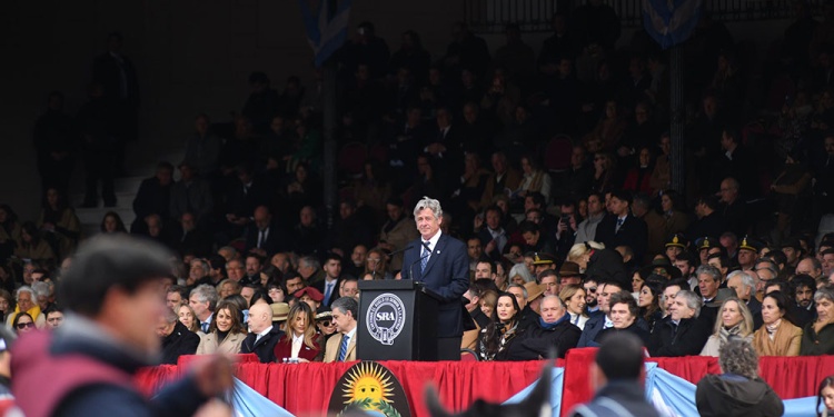 El presidente de la Sociedad Rural Argentina, Nicolás Pino, dijo que el sector agropecuario reconoce “los avances que ha habido y lo que resta por hacer. Porque si algo tenemos claro, presidente, es a donde no queremos volver”, en alusión al kirchnerismo, lo que desató el primer aplauso de la gente en las gradas, mientras que volvió a pedir la eliminación de las retenciones y le apuntó a provincias y municipios afirmando que el peso monetario de los IIBB en algunos casos “iguala o supera el de las retenciones”.