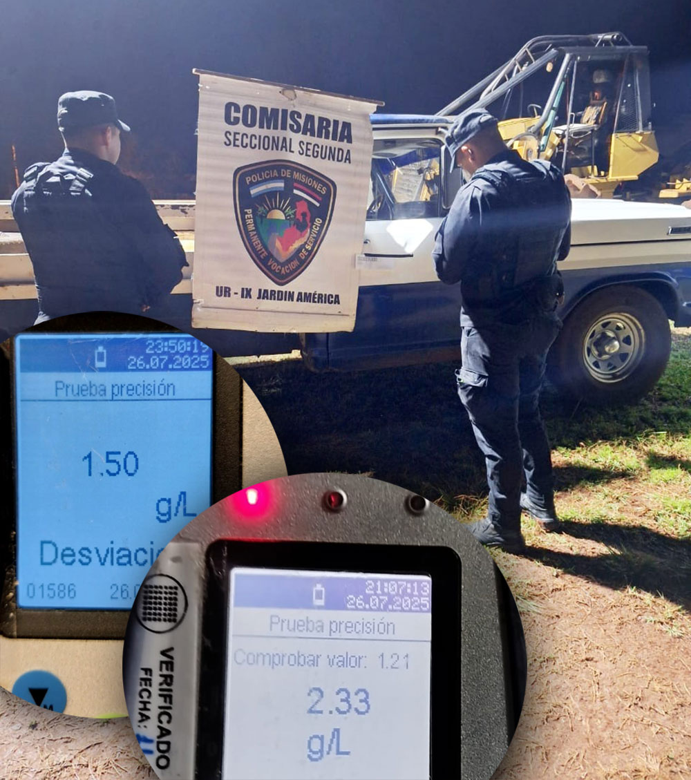 El segundo caso ocurrió en la zona de Ruiz de Montoya, sobre la ruta provincial 7, donde un hombre de 30 años, también domiciliado en esa localidad, perdió el control de su Volkswagen Suran y despistó hacia la banquina. En este caso, el examen de alcoholemia arrojó 1,50 g/l.