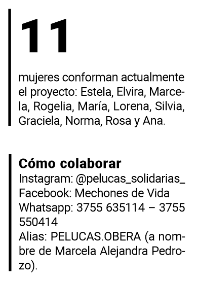 También confeccionan pelucas para los más pequeños. En ese caso, trabajan viajando a Posadas para hacer entrega de las confecciones en el Hospital Pediátrico.