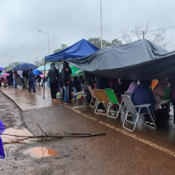 En la continuidad de las medidas de fuerza de ayer, en el marco del paro de 48 horas implementado, docentes cortan totalmente la ruta nacional 14, en la localidad de Leandro N. Alem.
