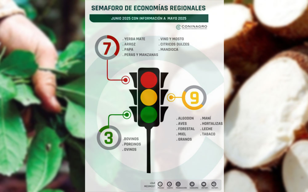 El último informe del Semáfor de Economías Regionales de la Confederación Intercooperativa Agropecuaria (CONINAGRO) correspondiente a junio, puso en alerta al sector yerbatero y al de la mandioca, que quedaron marcados en rojo, junto a otras cinco actividades que enfrentan fuertes desequilibrios económicos.