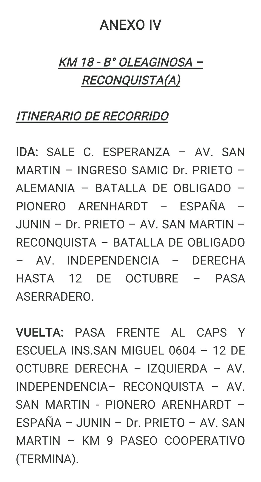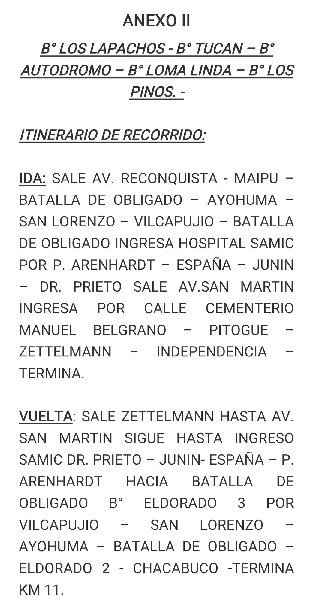 La normativa sancionada, que tuvo el acompañamiento de seis concejales y el voto negativo de la edil Cristina Bandera, establece formalmente los itinerarios y los horarios de varias líneas que ya venían operando, algunas desde hace más de una década, pero cuya regulación no estaba respaldada por una ordenanza vigente. Entre los trayectos regularizados se encuentran los de los barrios Lapachos, Tucán, Autódromo, Loma Linda, Los Pinos, Oleaginosa, Cabureí, Paticuá, Lomas del Paraná, B° Roulet y B° Sarmiento, entre otros.
