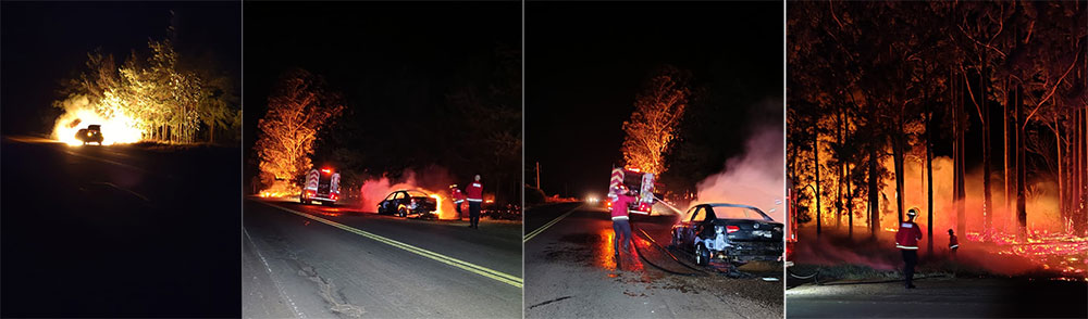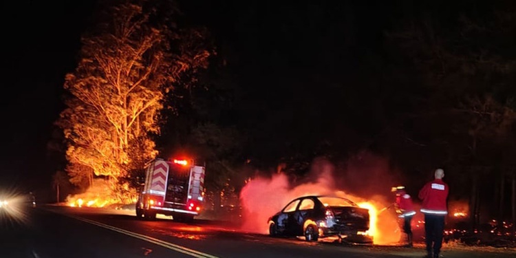 Personal de la División Bomberos de la Unidad Regional II intervino para sofocar las llamas que consumieron el vehículo. Luego, con el apoyo de Bomberos Voluntarios de Oberá, se logró controlar el foco ígneo que se había extendido hacia la vegetación.