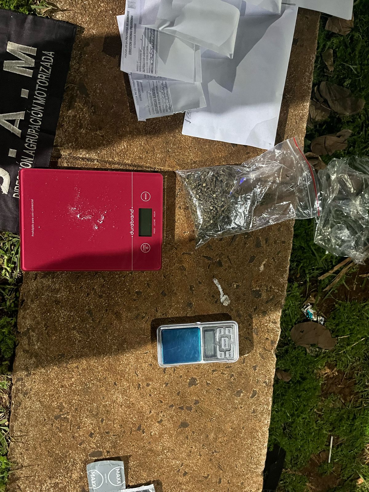 Durante la requisa se incautaron dosis de cocaína y marihuana, una balanza digital de precisión, envoltorios plásticos, dos teléfonos celulares, una riñonera con envoltorios, una tarjeta y $63.000 en efectivo, en billetes de baja denominación. Las pruebas químicas realizadas por la Dirección de Drogas Peligrosas confirmaron que las sustancias incautadas correspondían a clorhidrato de cocaína y cannabis sativa, ambas fraccionadas y listas para su comercialización.