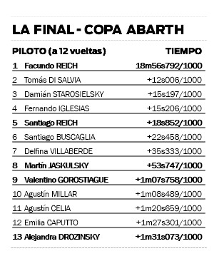 La divisional promocional Copa Abarth, que se corre con los tradicionales Fiat 595, tuvo una sorpresa bien misionera en la finalísima, ya que el obereño Facundo Reich se quedó con la victoria en lo que fue su debut en el ámbito nacional.