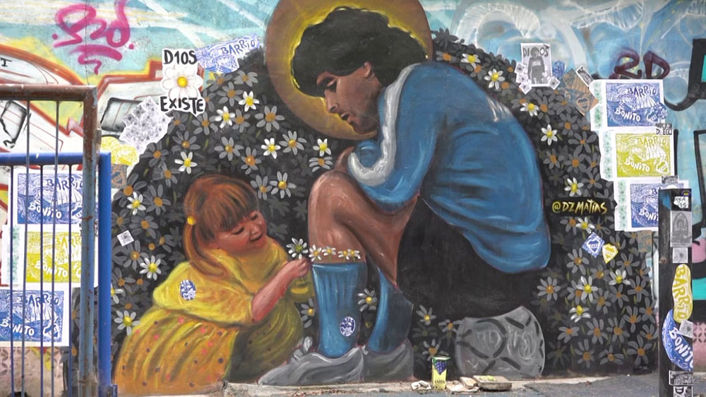 Cuadro, murales, los ojos y la sonrisa del Diego, las canciones, poesías, misterios, batallas, talento, principios y modales, sin agitarse, todo cuidadosamente encaja en cada plano y duración.