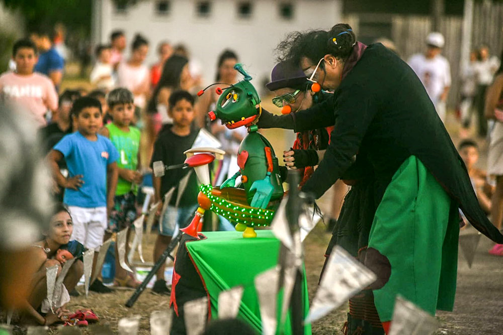 Desde las 16 horas, debido a la previsión de una jornada fría, la apertura estará a cargo de “La magia de los títeres”, un espectáculo de la dupla Berenice Teixeira Villalba y Diego Raga, recientes ganadores del Premio Arandú a mejor obra de teatro. El show combina técnicas de clown, títeres y reciclado para contar las aventuras de Guayaba Silvestre y Filipo Filipone, payasos que invitan a mirar la vida con humor y ternura. Entre los personajes se destaca Tincho el Carpincho, conocido como “El Capi-Bara”, un ícono del teatro de títeres misionero.