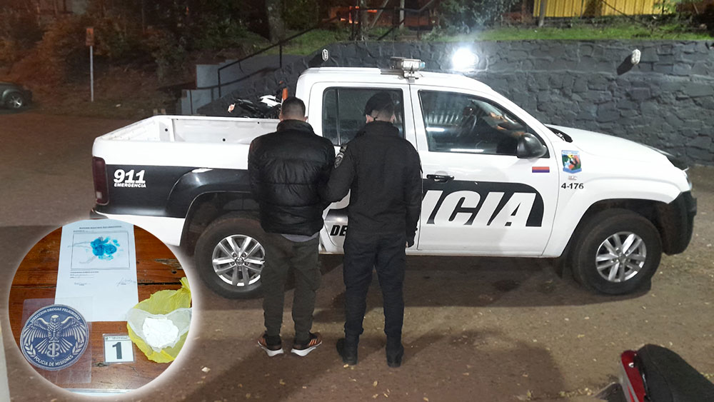 Durante la identificación, los policías solicitaron al detenido que exhibiera un bulto que llevaba en el bolsillo de su campera. Se trataba de una bolsa plástica que contenía una sustancia polvorienta blanca.