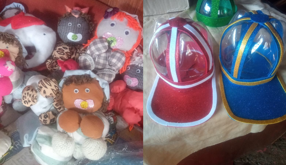 Los regalos fueron hechos a mano con telas y material reciclado. Peluches, gorras, souvenirs y más.