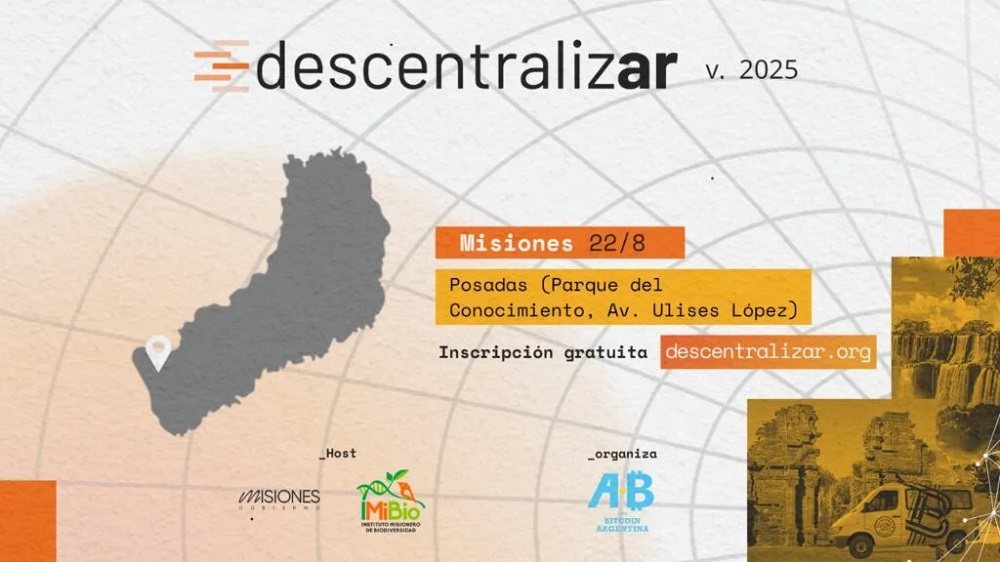Este 22 de agosto se llevará adelante en Posadas una nueva edición de DescentralizAR, un encuentro gratuito y abierto más importante de Argentina sobre Bitcoin y tecnologías descentralizadas. El mismo tendrá lugar en el Parque del Conocimiento de 9 a 18 horas; con un cierre en formato meetup de 19 a 21 horas.