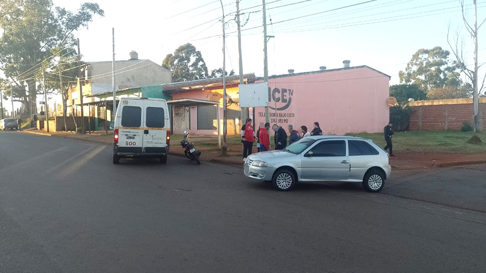 Un motociclista sufrió lesiones en la rodilla derecha tras colisionar con un automóvil este miércoles por la mañana en la intersección de avenida Cabo de Hornos y calle 75 B, en la zona sur de Posadas. El hecho ocurrió cerca de las 8 y movilizó a efectivos policiales y personal de salud.