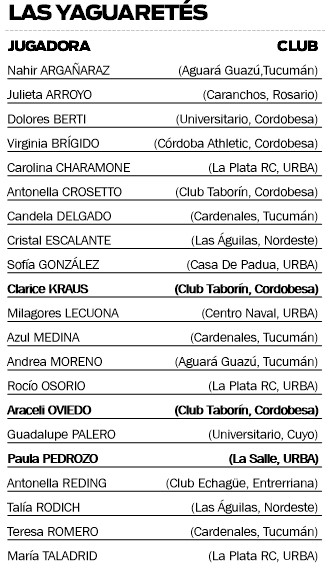 Las misioneras María Paula Pedrozo (La Salle, Buenos Aires) y Araceli Oviedo y Clarice Kraus (Club Taborín, Córdoba) comenzaron a trabajar con el plantel del seleccionado argentino femenino de rugby, Las Yaguaretés.