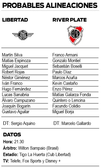 River Plate visitará este jueves a Libertad de Paraguay, por la ida de los octavos de final de la Copa Libertadores, en busca de un resultado que le permita volver a la Argentina con cierta tranquilidad.